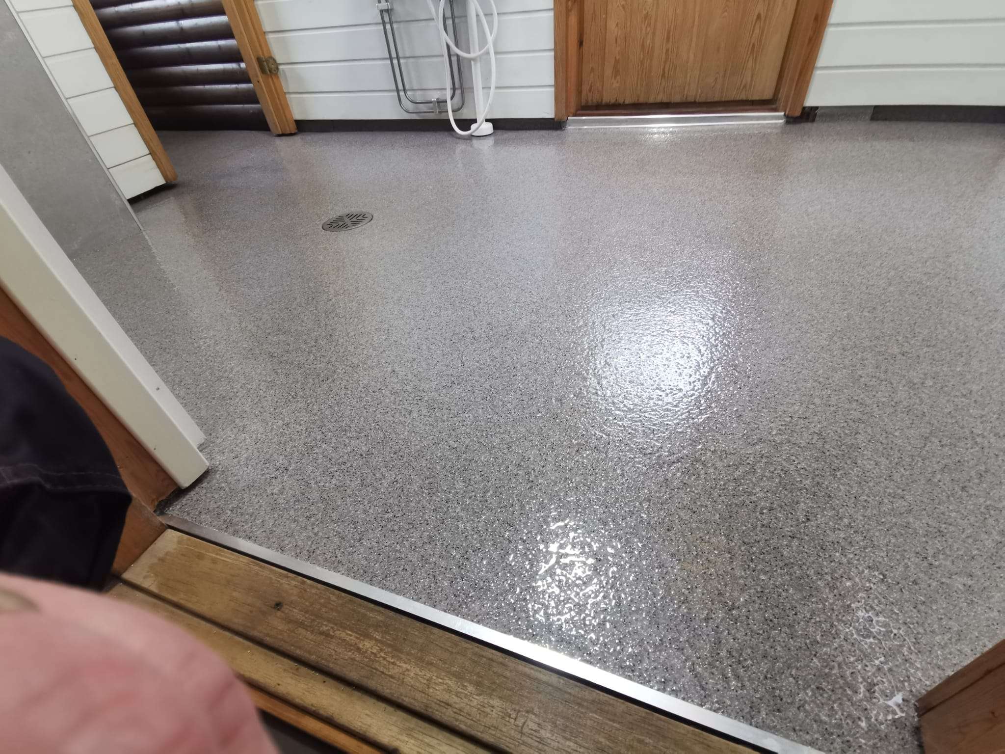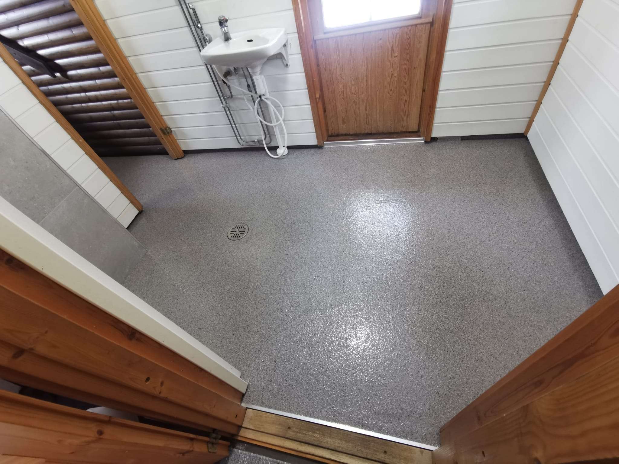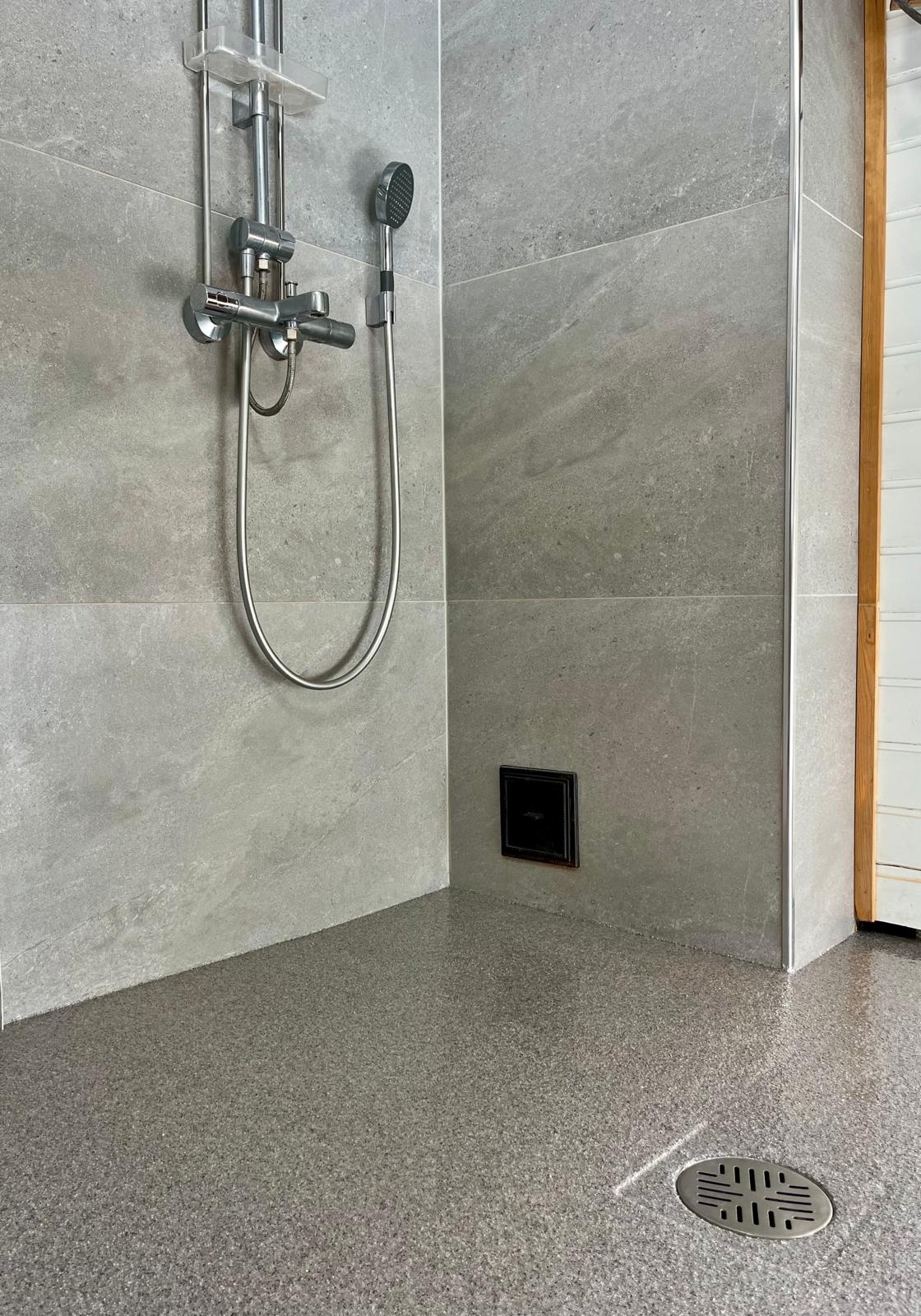 Ruiskumassalattia toimii itsessään sertifioituna vedeneristeenä. Täysin saumaton ja vesitiivis pinta ehkäisee tehokkaasti kosteusongelmia pitkällä aikavälillä.
